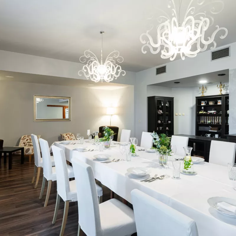 Kromě restaurace jsou vám k dispozici salonky a letní salonky, odkud je jedinečný výhled na všechny výrazné dominanty Mikulova.